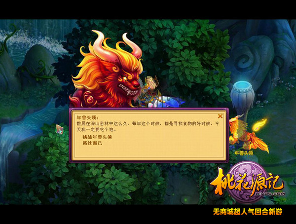 新年之际,人们都沉醉在欢乐的节日气氛中,邪恶的年兽头领却趁机带领着捣乱的小年兽,嚣张的入侵桃溪镇、小杏川、青林小径、踏云道、飞流山,在那为非作歹。勇士们快去消灭他们!另外,财神爷降临天熙城(226 135)大家也一定记得去迎财神哦!
