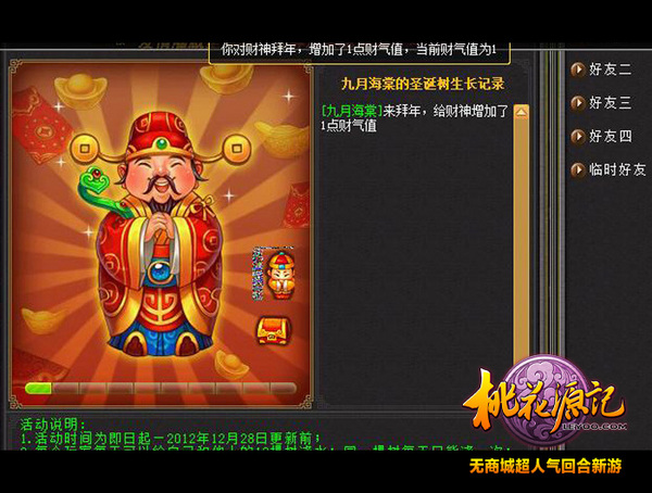 2、每个玩家每天可以给自己和好友的一共10位财神拜年;同一个财神每天只能拜年1次;