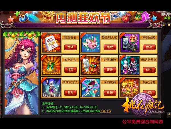 2013年公平免费回合制网游《桃花源记》全面内测火爆进行中,今天中午12点将再次加开内测极速双线新服“晴空万里”。给放假的玩家一个清凉一夏、祛热消暑的好去处,还你一个公平的世界。