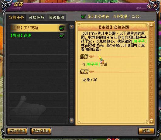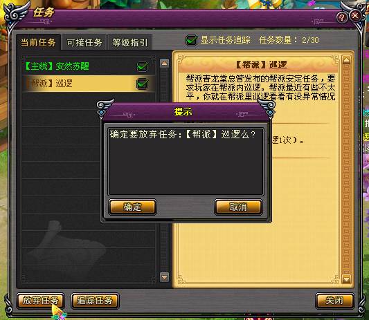 如果玩家想要放弃某个任务,或者某一任务已经失败需要取消,应该打开“任务”界面选中该任务,点击“放弃任务”来完成操作。