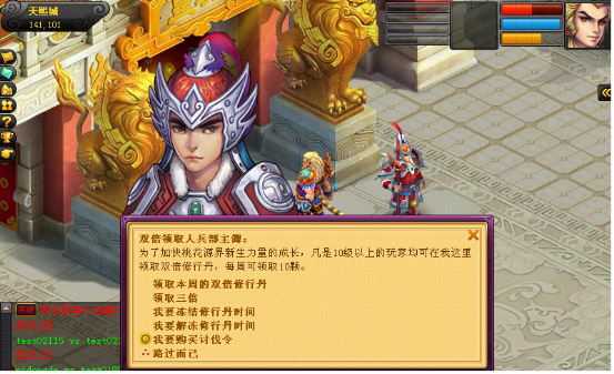 没有帮派的玩家可以消耗银子领取三倍修行丹,使用1颗三倍修行丹可获得1小时的三倍经验时间。