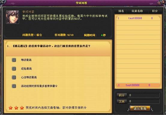 答题期间,如果想要提前结束可直接关闭界面来结束学问对答,但所得经验也会相应减少。