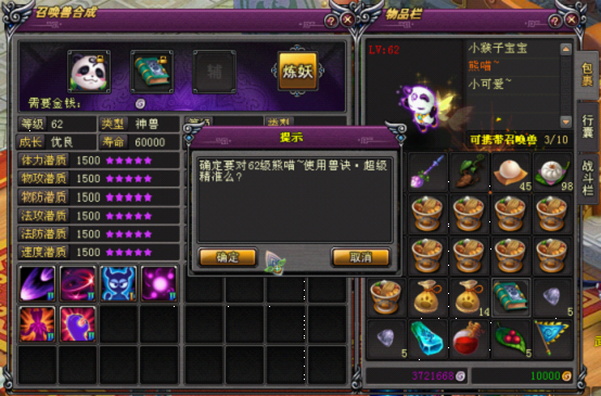 2、在天煕城“幻灵仙师”处选择“召唤兽合成”选项,将召唤兽和选中的兽诀放入合成栏,点击“炼妖”按钮,即可使召唤兽习得该兽诀所带技能。