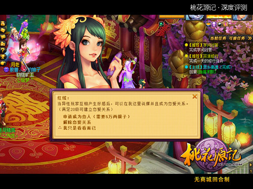 其中的恋爱系统,与其说是一个系统,不如说一个特殊的好友功能更准确,有些近似于好友交互当中的结拜功能,只不过这里是一男一女两个角色之间的特殊“好友”关系。