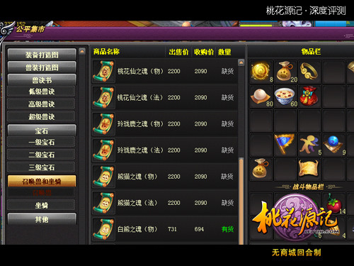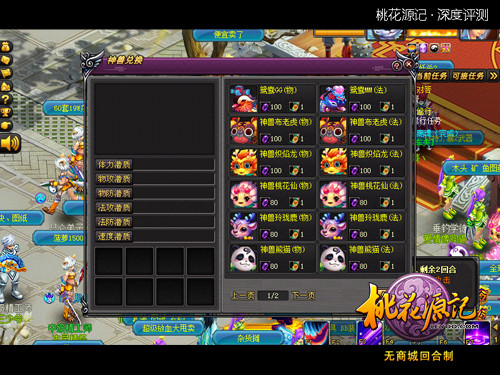 《桃花源记》中的装备、宠物、坐骑和帮派等系统,均沿用了回合制MMORPG中的主流设定,只是在实际体验方面,更多地为免费用户大开方便之门,例如神兽除了随机获取外,还增设了通过日常活动积累道具来兑换的方式。一味的随机获得也就意味着“高富帅”将用现金优势垄断顶级宠物资源,而积累兑换则给予了所有玩家机会。