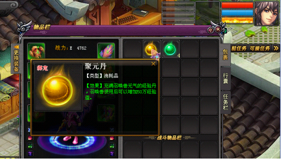 聚集召唤兽能量的聚元丹,他的目的在于让召唤兽更自如的成长!