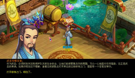 武圣导师苍重让你降伏灵犀谷大盗,用他们的百灵钥匙打开试炼之门见到武圣前辈。宽容、爱心和卓越的实力使你通过了武圣前辈的考验,成功进阶为武圣。